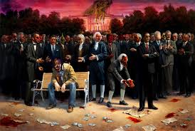 As further insult, after the illegality surfaced this administration did not apologize or reverse engines, it ramped up its encroachments. Local artist Jon McNaughton nailed it with his painting, "The Forgotten Man", in which he depicts our current administrator standing on the Constitution. Is this the government you say will not impound religious freedom because it's unconstitutional? Surely you jest!